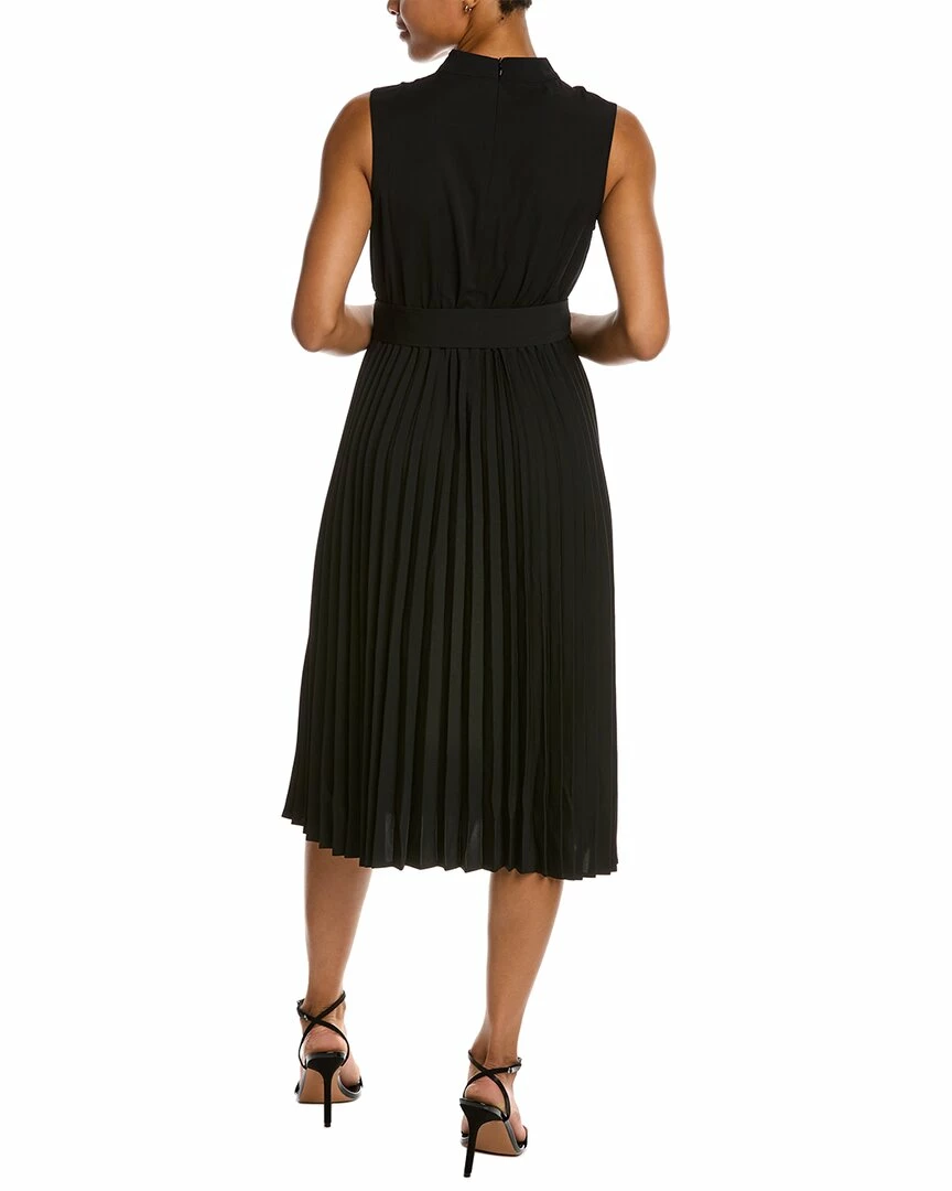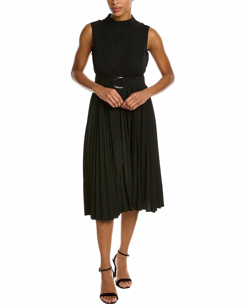 - A-Line Dress In Black With Sleeveless Pleated Design And Belted Waist