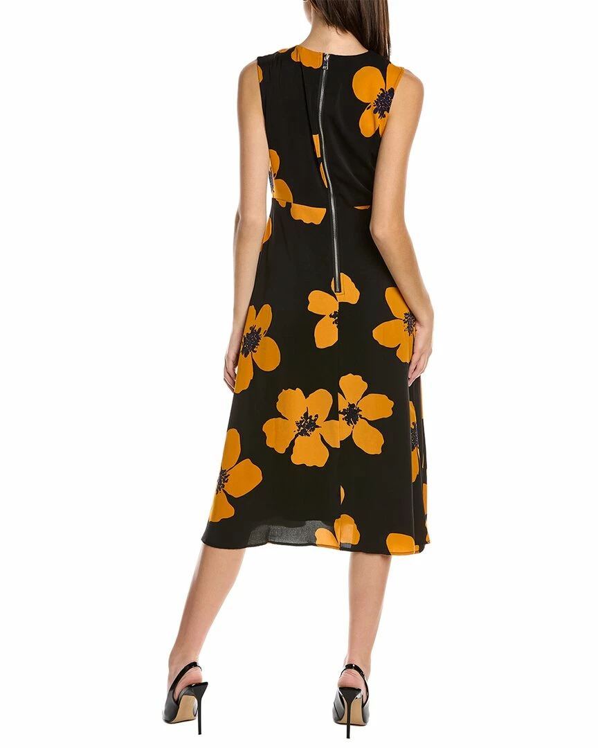 - A-Line Dress In Black & Orange With 3D Bow At Left Shoulder And Dual Side On-Seam Pockets