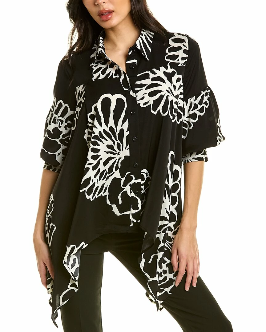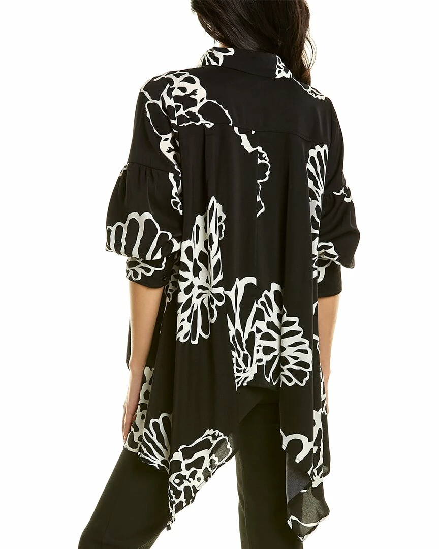 - Asymmetrical Blouse In Black With Dropped Shoulders, Balloon Sleeves,
