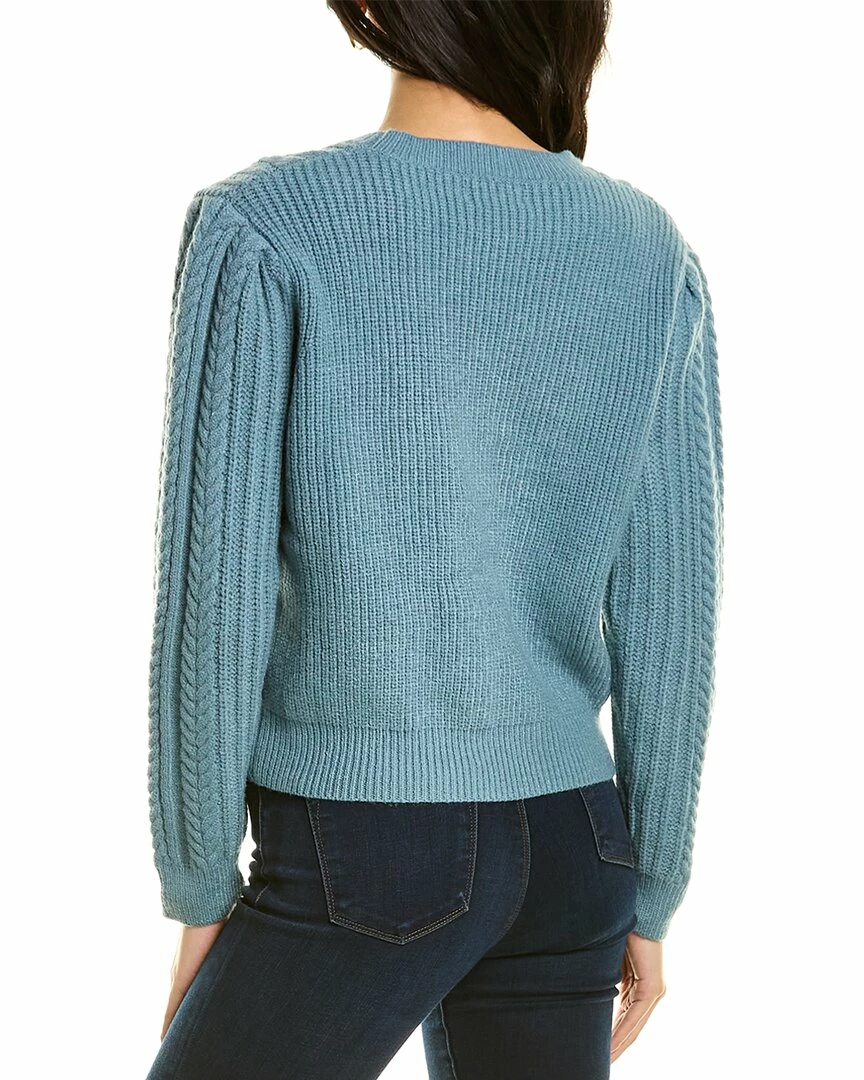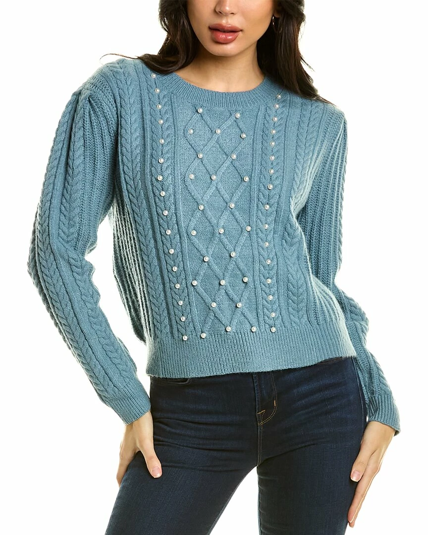 - Bead Embellished Cable-Knit Sweater In Blue With Pearl Bead Accents And Dropped-Shoulders