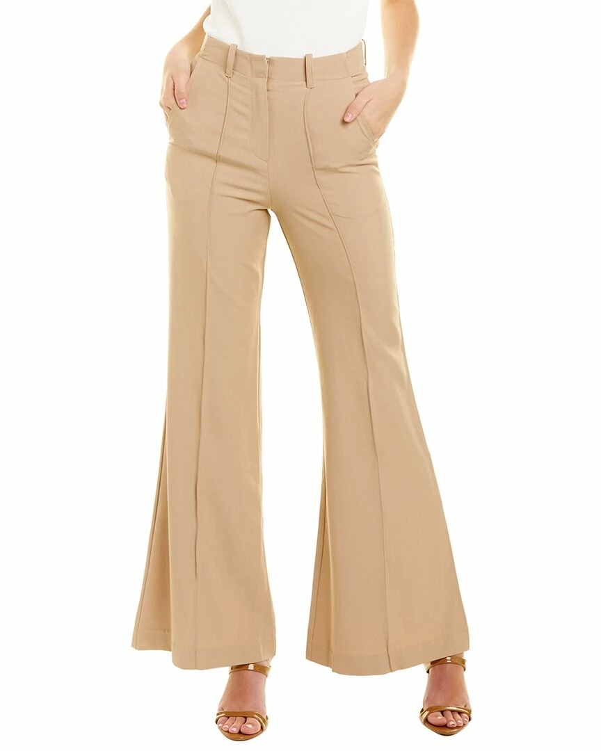 - Bootcut Pant In Beige With Belt Loops, Darted Front, And Four-Pocket Styling