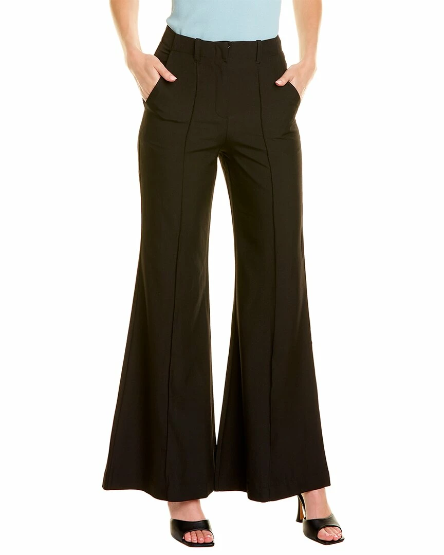 - Bootcut Pant In Black With Belt Loops, Darted Front, And Four-Pocket Styling