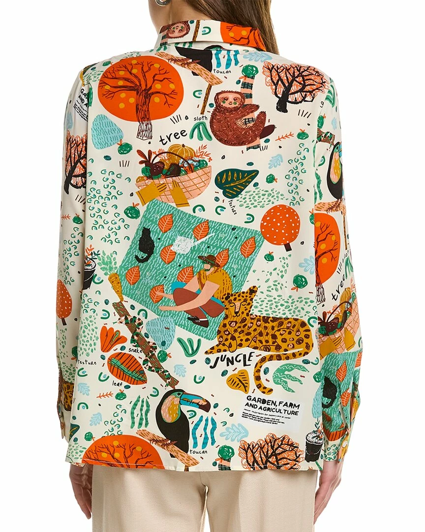 - Button-Down Blouse In White Multicolor With Point Collar And Button Cuffs