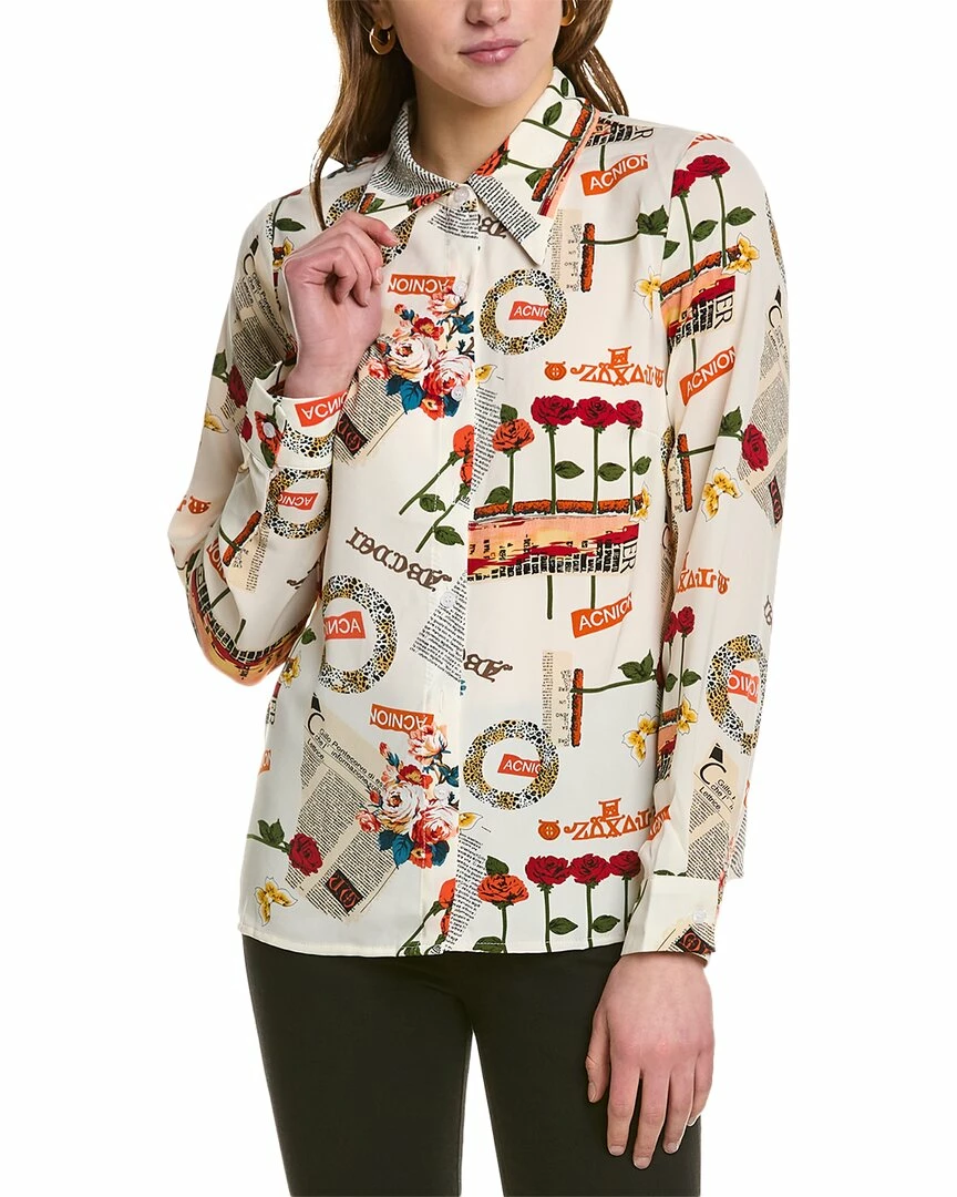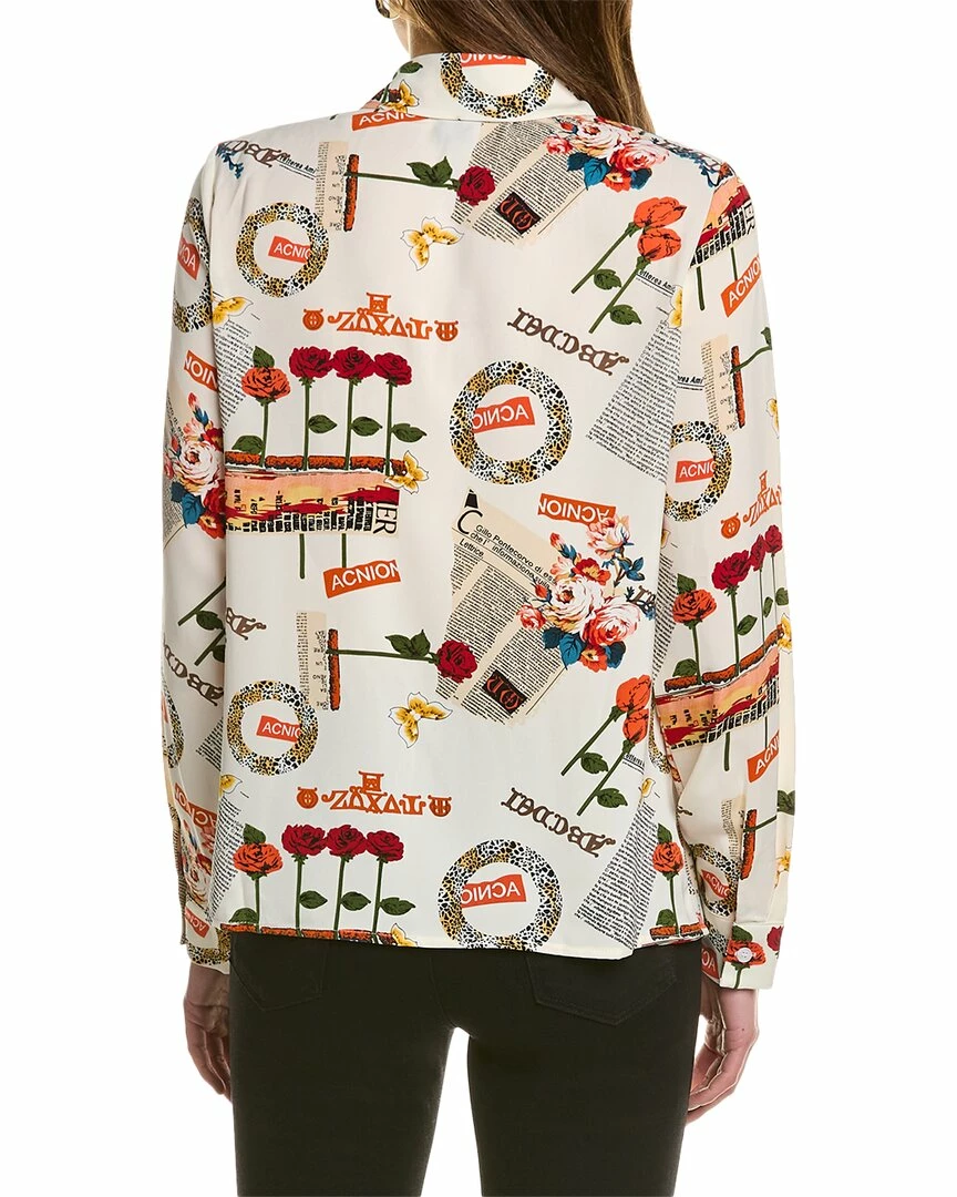- Button-Down Blouse In White Multicolor With Point Collar And Button Cuffs