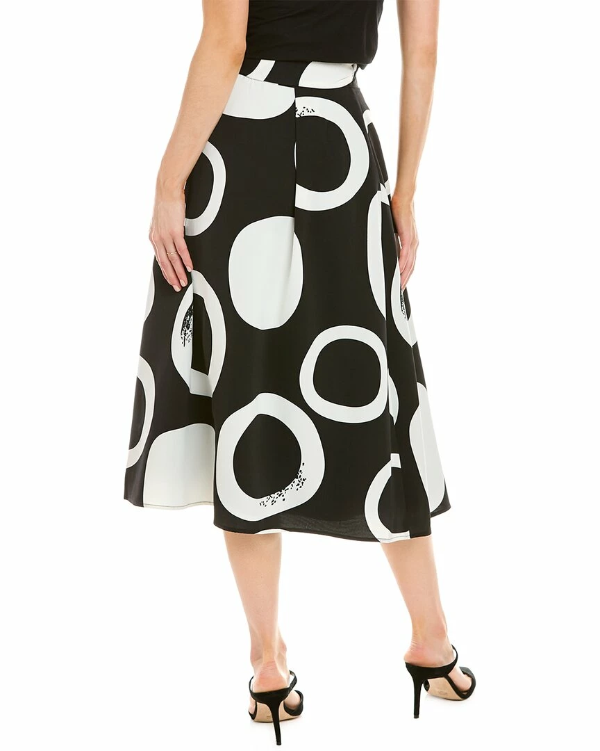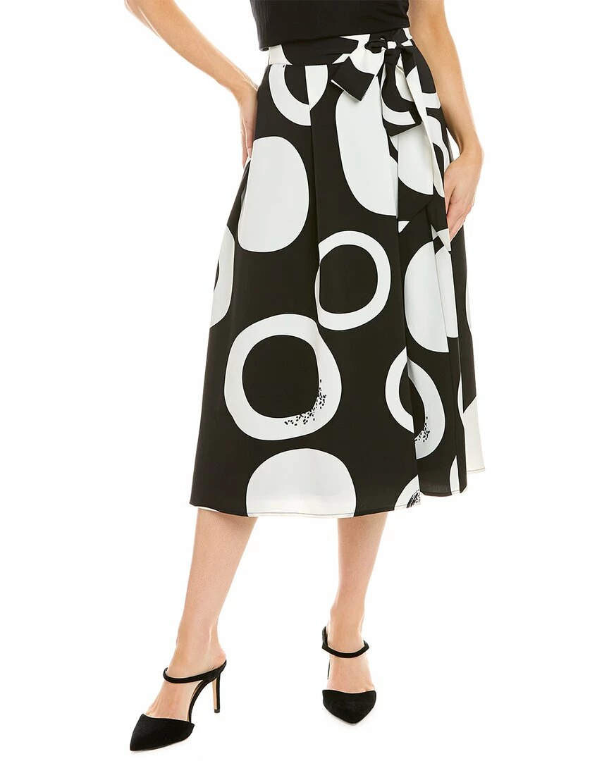 - Circle Print A-Line Skirt In Black & White With Self-Tie At Waist And Draped Design