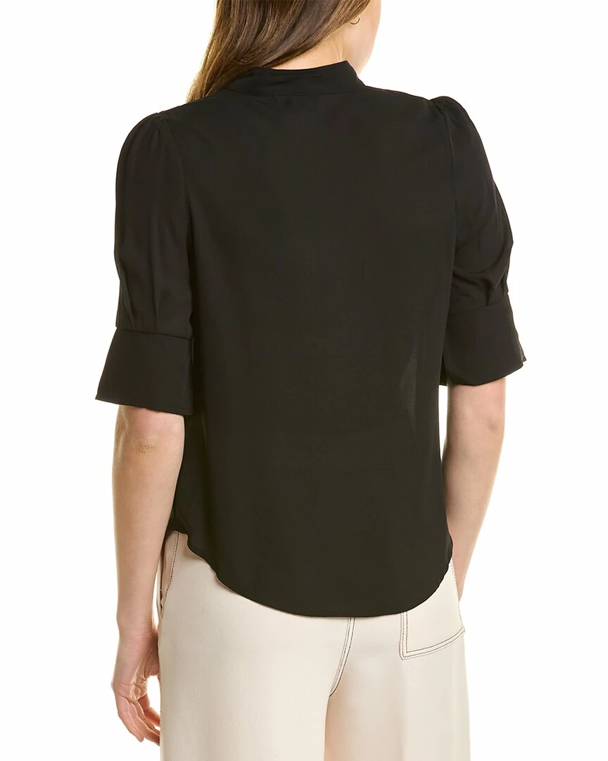 - Cropped Blouse In Black With Lace Detail And Puff Sleeves