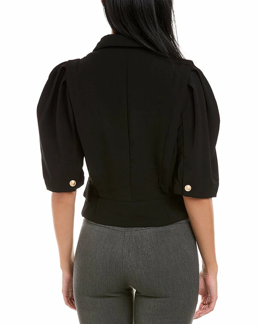 - Cropped Top In Black With Pleated Elbow-Length Sleeves