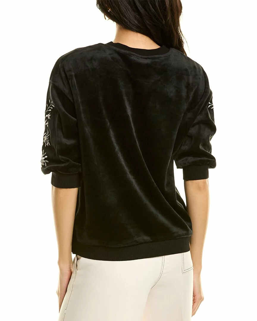 - Embroidery Blouse In Black With Velour Design And Dropped-Shoulder Elbow-Length Sleeves