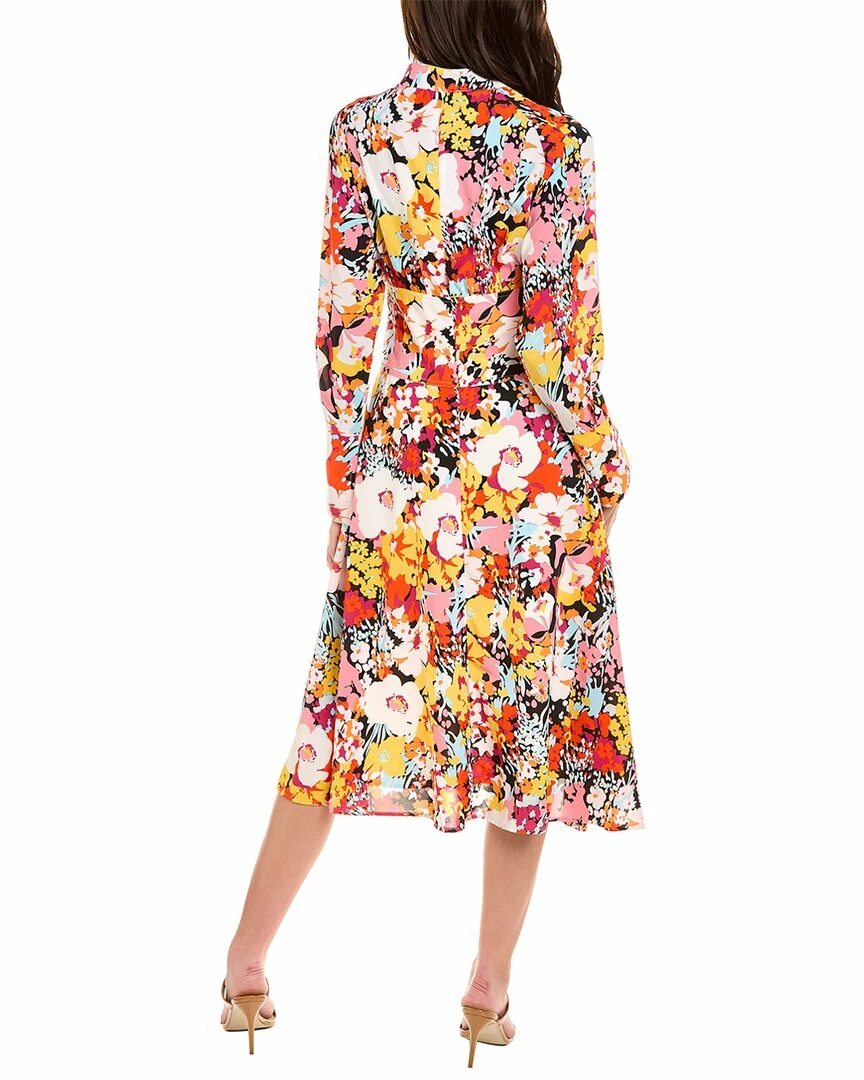 - Floral Midi Dress In Multicolor With Tie Neck And Vented Cuffs