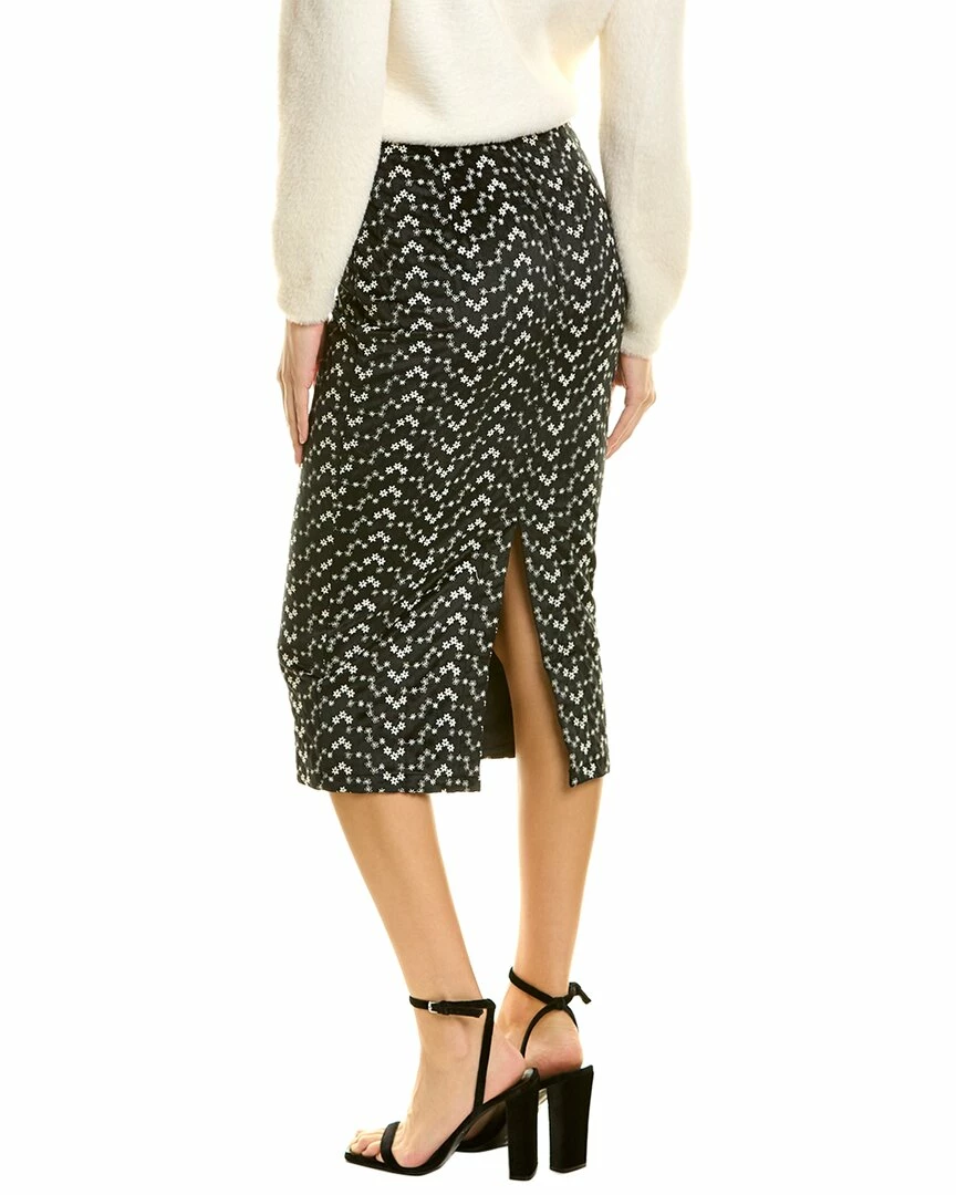 - Flower Embroidered Midi Pencil Skirt In Black With Slim Fit Velour Design And Center Back Vent At Hem