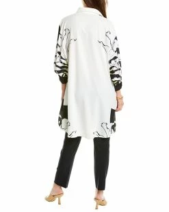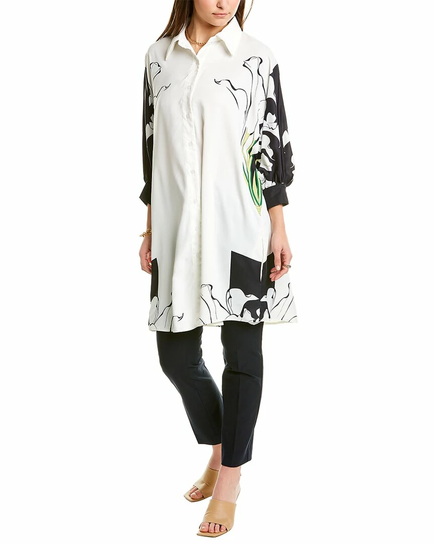 - Flower Print Colorblocked Top In White/Black With Spread Collar, Dolman Sleeves With Button Cuffs And Dual Side Seam Pockets