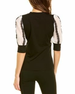 - Flower Trim Top In Black And White With Elbow-Length Contrast Sleeves