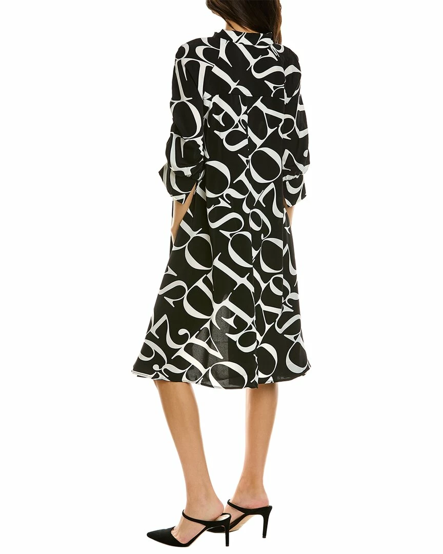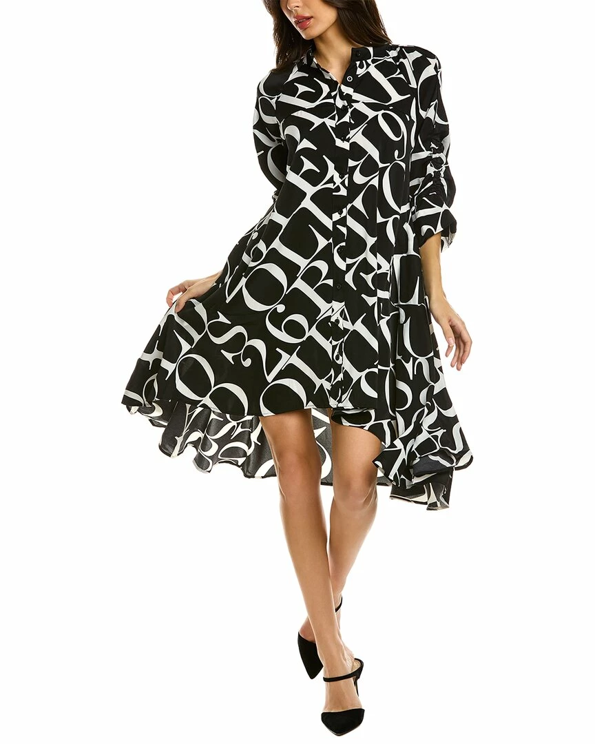 - Handkerchief Shirtdress In Black And White With Mock Neck, Inverted Pleat At Shoulders, Elasticized Cuffs, Pleat At Back, Two Front Pockets, And High-Low Hem