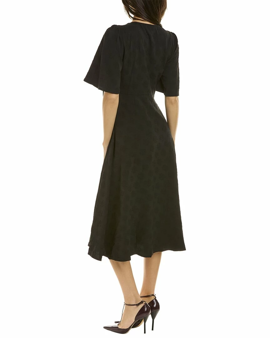 - Jacquard Shirtdress In Black With Flare Sleeves