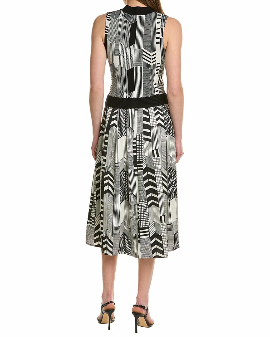 - Knit Top Midi Dress In White And Black Combo With Funnel Neck And A-Line Skirt