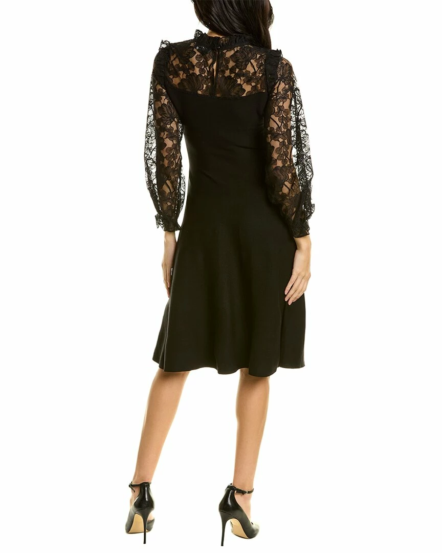 - Lace Sleeve Dress In Black With Balloon Sleeves And Ruffle Trims