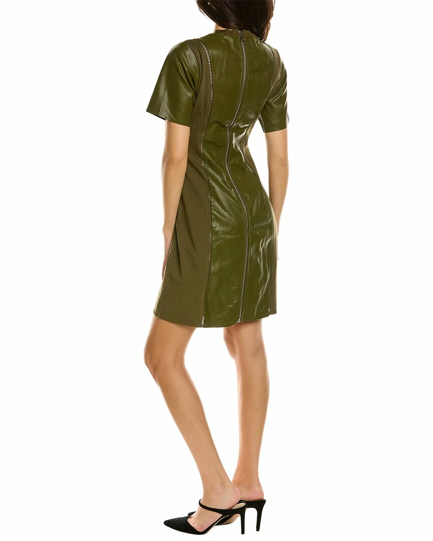 - Ladder-Stitch Sheath Dress In Olive With Faux Leather Paneling