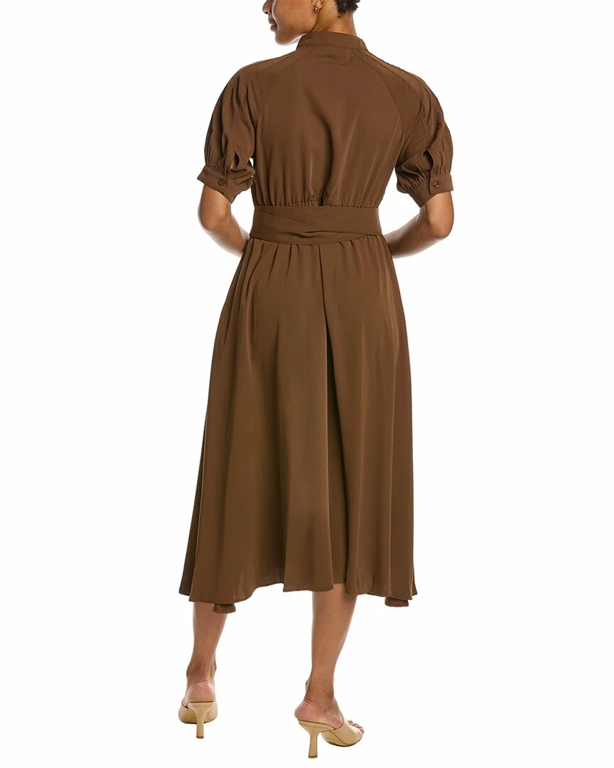 - Maxi Dress In Brown With Puff Sleeves, Pleated Bodice, Tie Waist, And Elasticized Back Waist