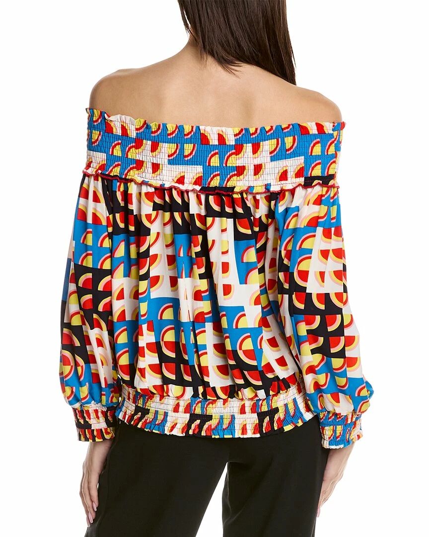 - Off-The-Shoulder Top In Multicolor With Smocked Trim And Balloon Sleeves