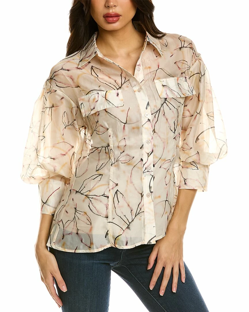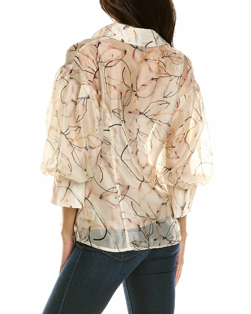 - Organza Blouse In Beige Multicolor With Balloon Sleeves