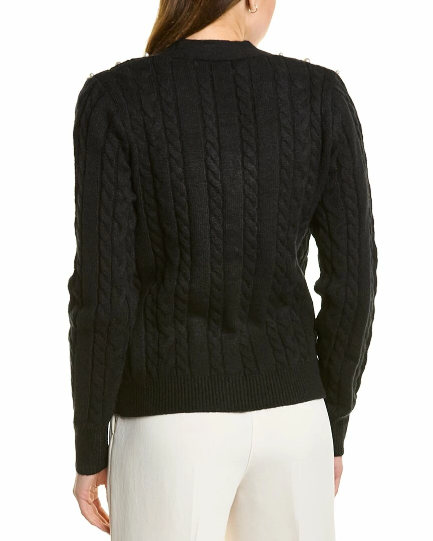 - Pearl Bead Cardigan In Black With Cable Knit Details