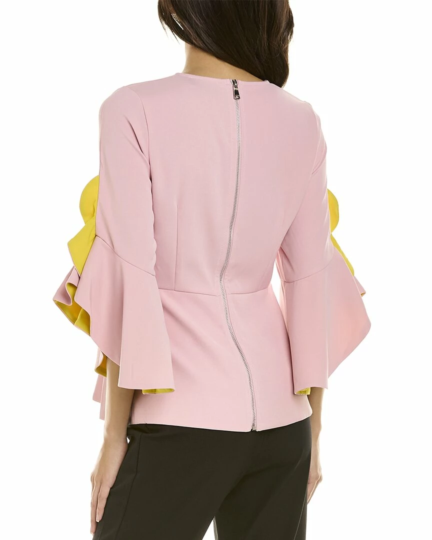 - Peplum Top In Pink With Ruffle Bell-Sleeves