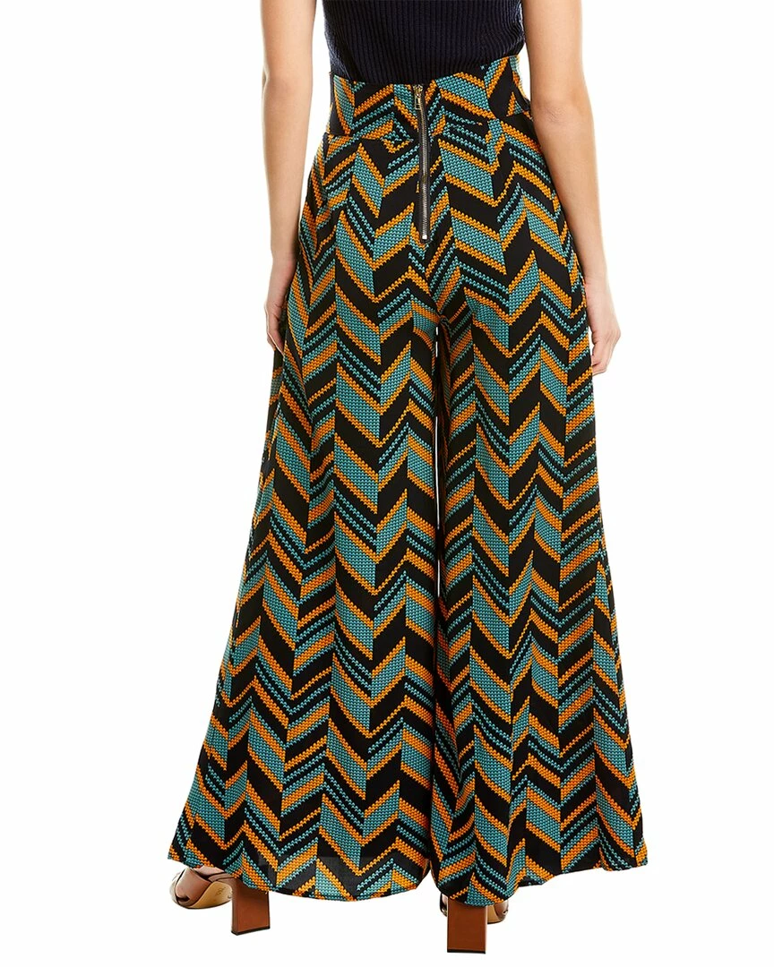 - Printed Long Square Pant In Black/Green With Elasticized Waist, Dual Side Seam Pockets And Wide Leg