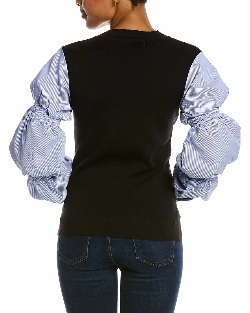 - Pullover In Black And Blue With Ribbed Design And Smocked Ruched Sleeves