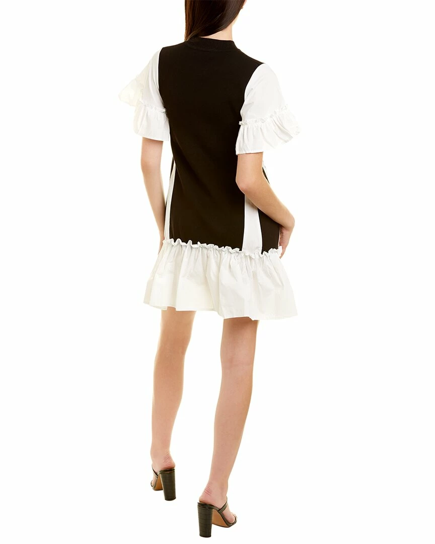 - Ruffle Cuff Detail Tunic Dress In Black With Stretch Rib Design, Mock Neck, And Poplin Hem