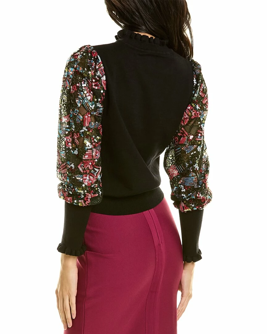 - Sequined Sleeve Sweater In Black With Balloon Sleeves And Ruffled Mock Neck