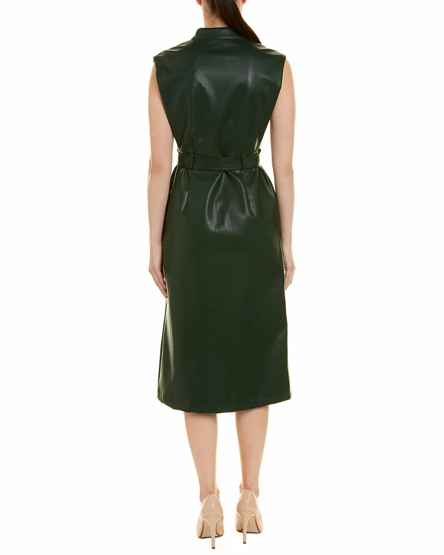 - Design Details – Faux Leather Design, Mock Collar, Belted Waist, Dual Side On-Seam Pockets, Vented Front Hem