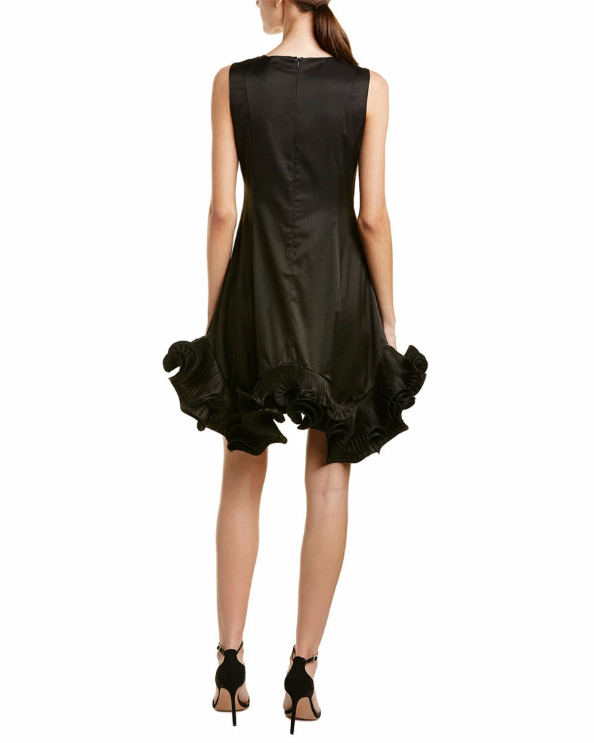 - Design Details – Satin Design, Pleated And Layered Ruffle Trim At Hem