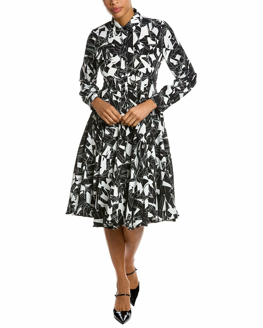 - Shirtdress In Black And White With Collared Neck And A-Line Silhouette