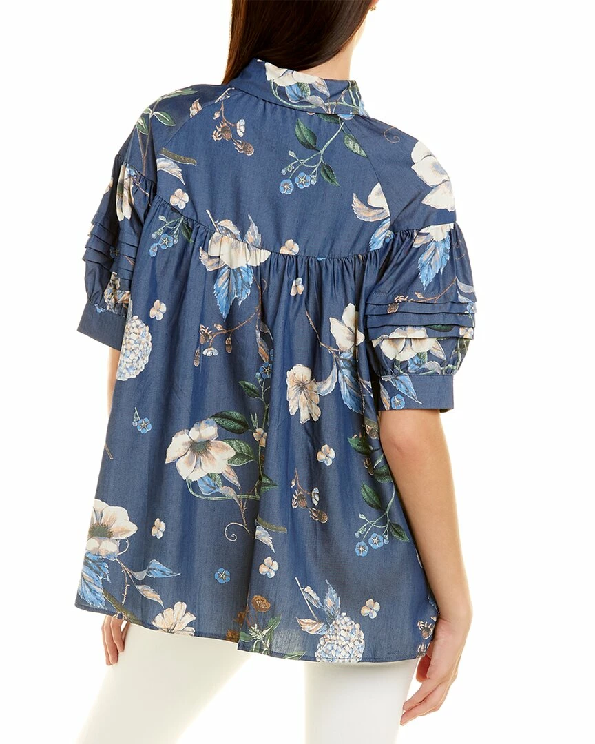 - Smock Shirt In Denim Blue With Elbow-Length Sleeves, Pintuck Details, And Shirttail Hem