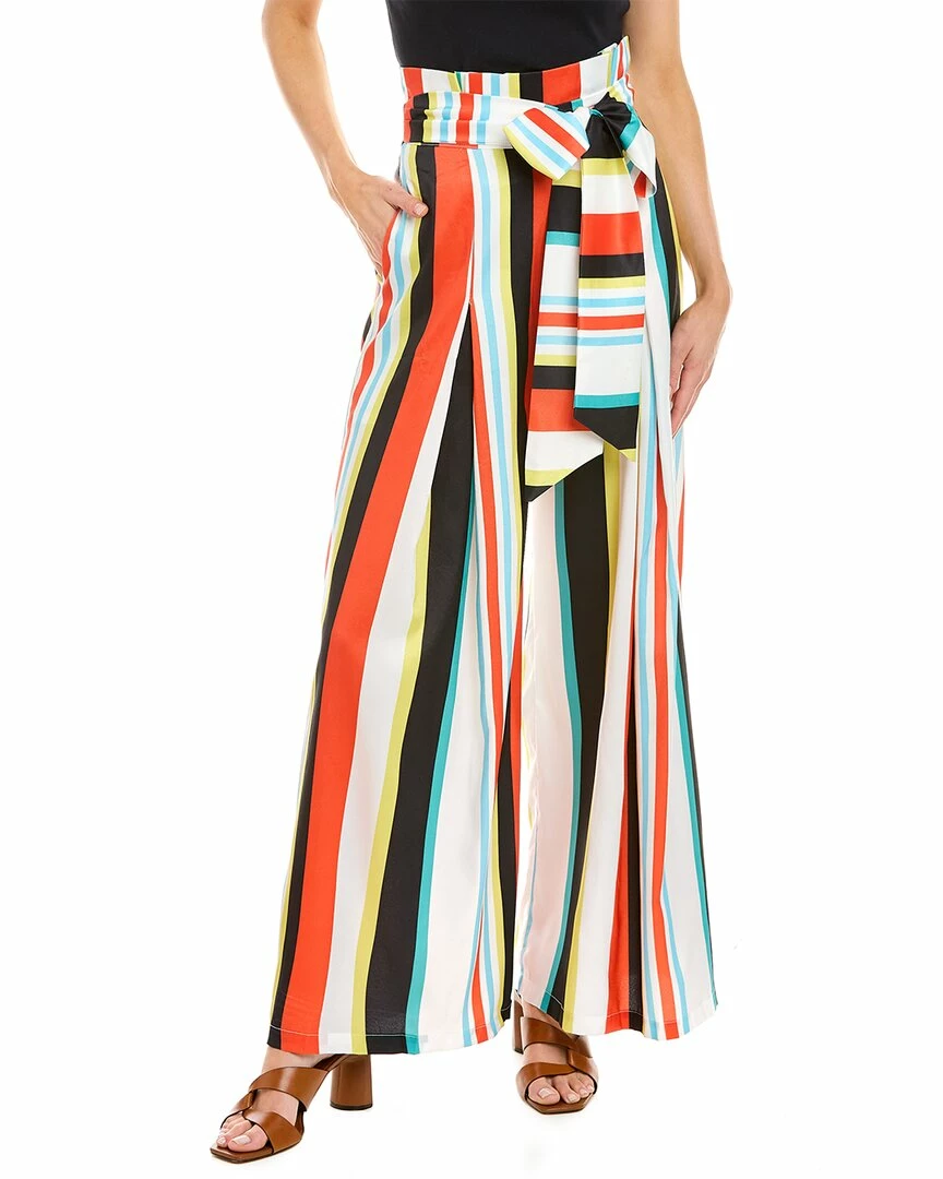 - Striped Pant In Multi With Paperbag Waist, Dual Side Seam Pockets, And Wide Leg Design