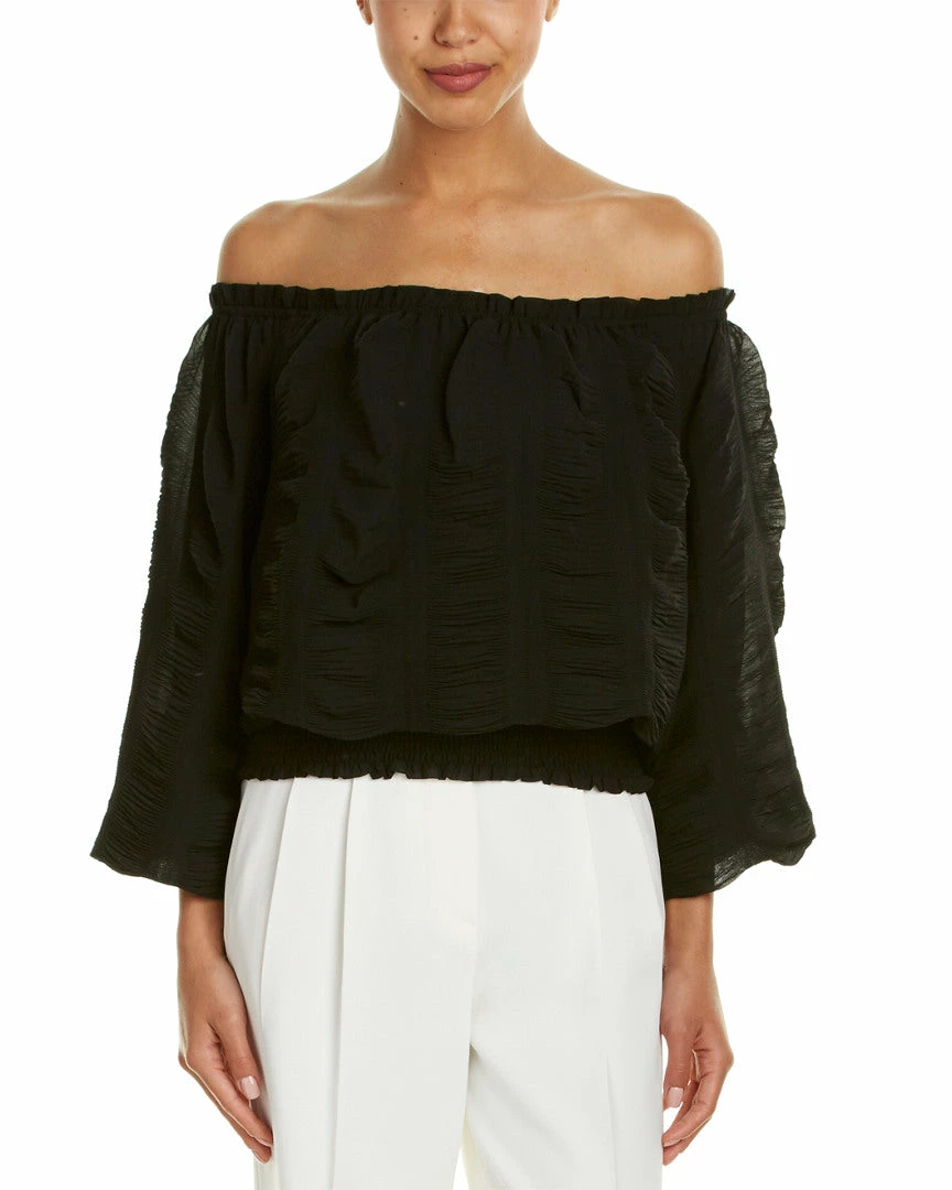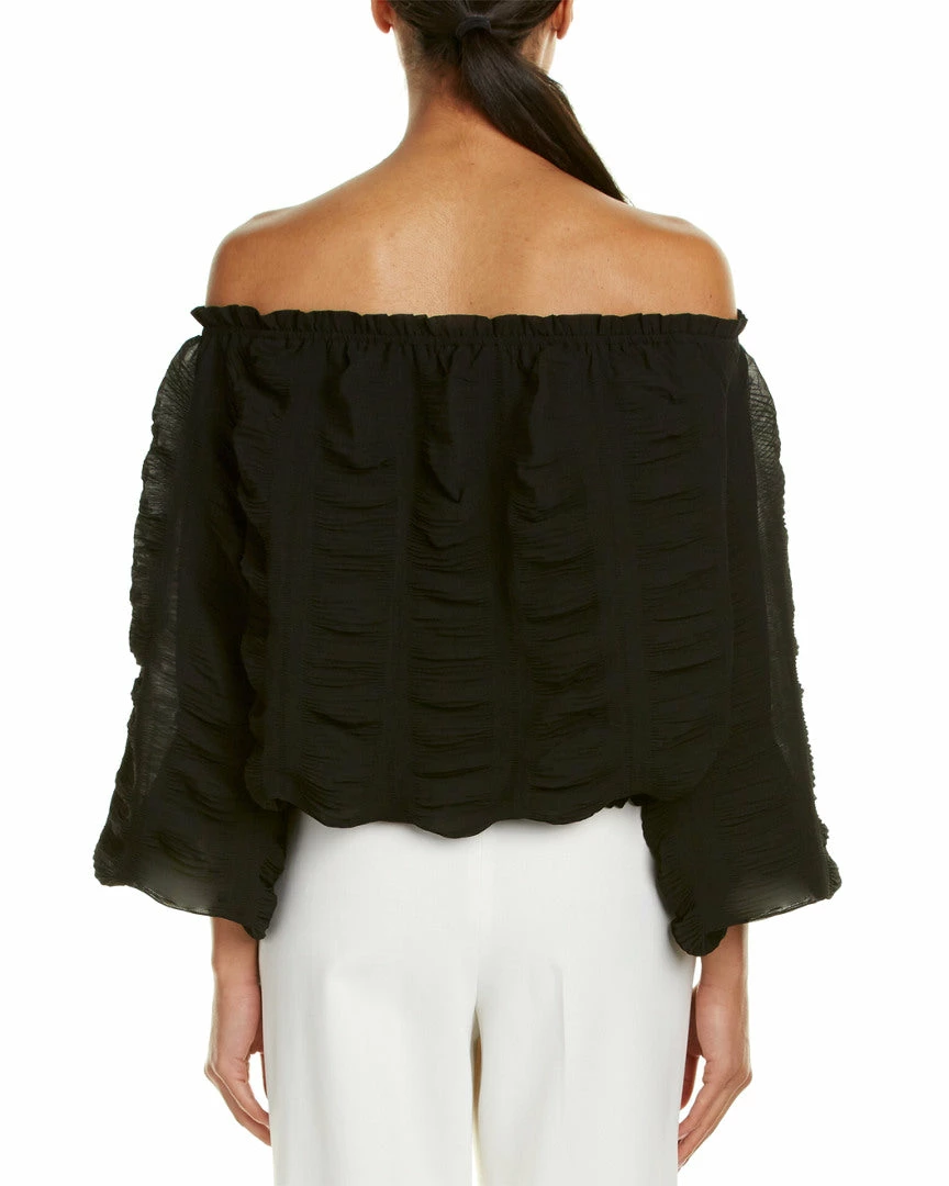 - Design Details – Pleated Chiffon Fabric, 3/4-Length Sleeves With Elasticized Inner Cuffs, Elasticized Ruffled Neckline, Smocked Hem